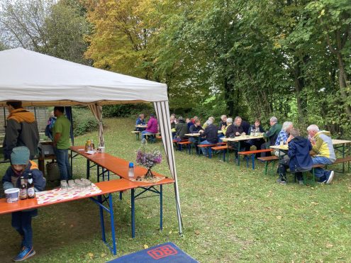 Die Ortsgruppe Grab des Schwäbischen Albvereins hat die Veranstaltung bewirtet. Es gab Rote Wurst und Käse vom Grill, Hackbraten, Spätzle mit Pilzsoße und ein reichhaltiges Kuchenbuffet mit selbstgebackenen Kuchen.